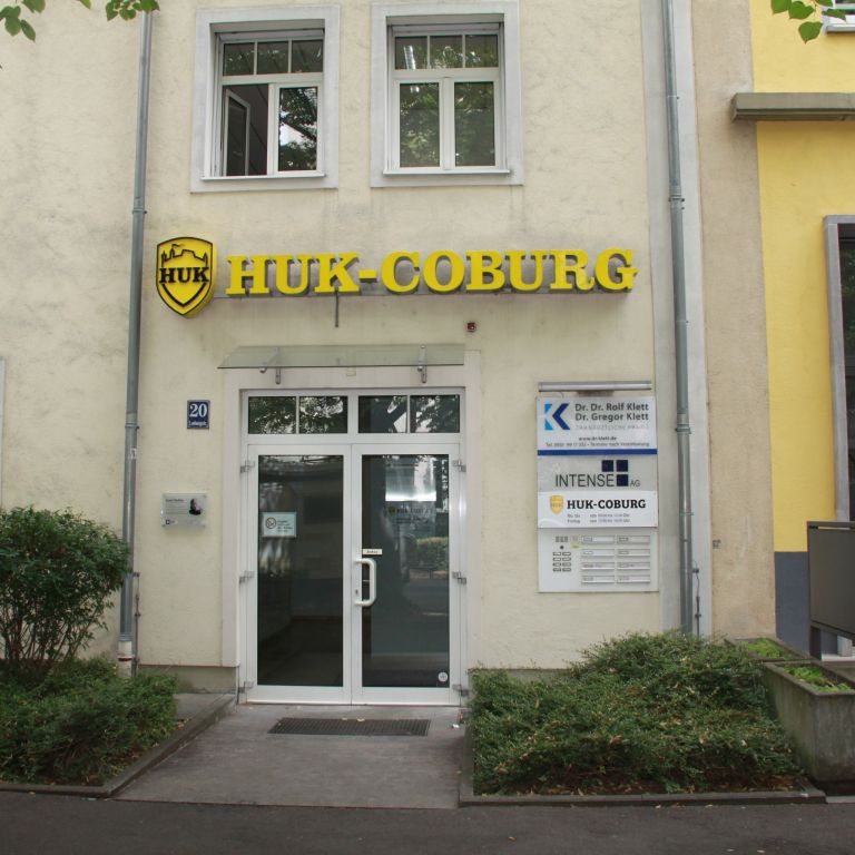 Der Praxiseingang liegt in der Ludwigstraße 20 gegenüber dem Finanzamt an der Ecke zum Dorint-Hotel. Im Haus befinden sich auch die HUK-Coburg und die Intense AG.